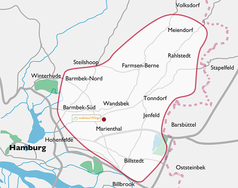 Fast jeder wünscht sich, so lange wie möglich selbstbestimmt und unabhängig zu Hause zu leben. Aber es kommen vielleicht einmal Tage, an denen Sie auf fremde Hilfe angewiesen sind. Dann sind wir für Sie da – und das sieben Tage die Woche. Wir bieten als ambulanter Pflegedienst in Hamburg-Wandsbek und umliegende Stadtteile professionelle Pflege und Betreuung in Ihrem häuslichen Umfeld. Sie können sich auf uns verlassen.